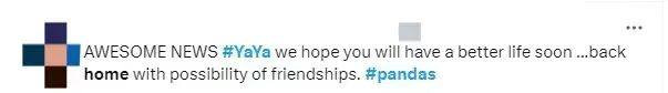 如今,“丫丫”终于可以回到家乡,有很多外国网友纷纷表达思念之情。