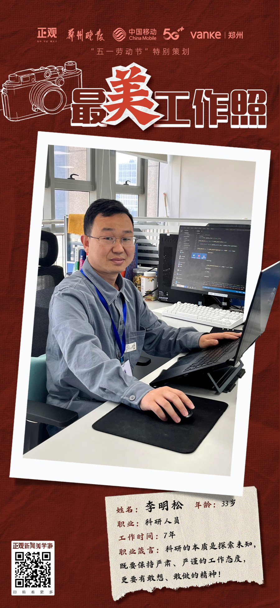 让“最美工作照”登上“郑州眼”,记录工作中难忘的瞬间。