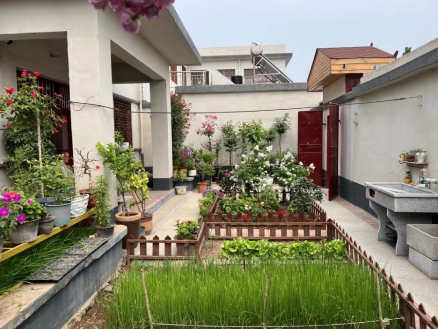 南屯村村民程淑玲在自家小院养花种草,已成为南屯村的一张名片