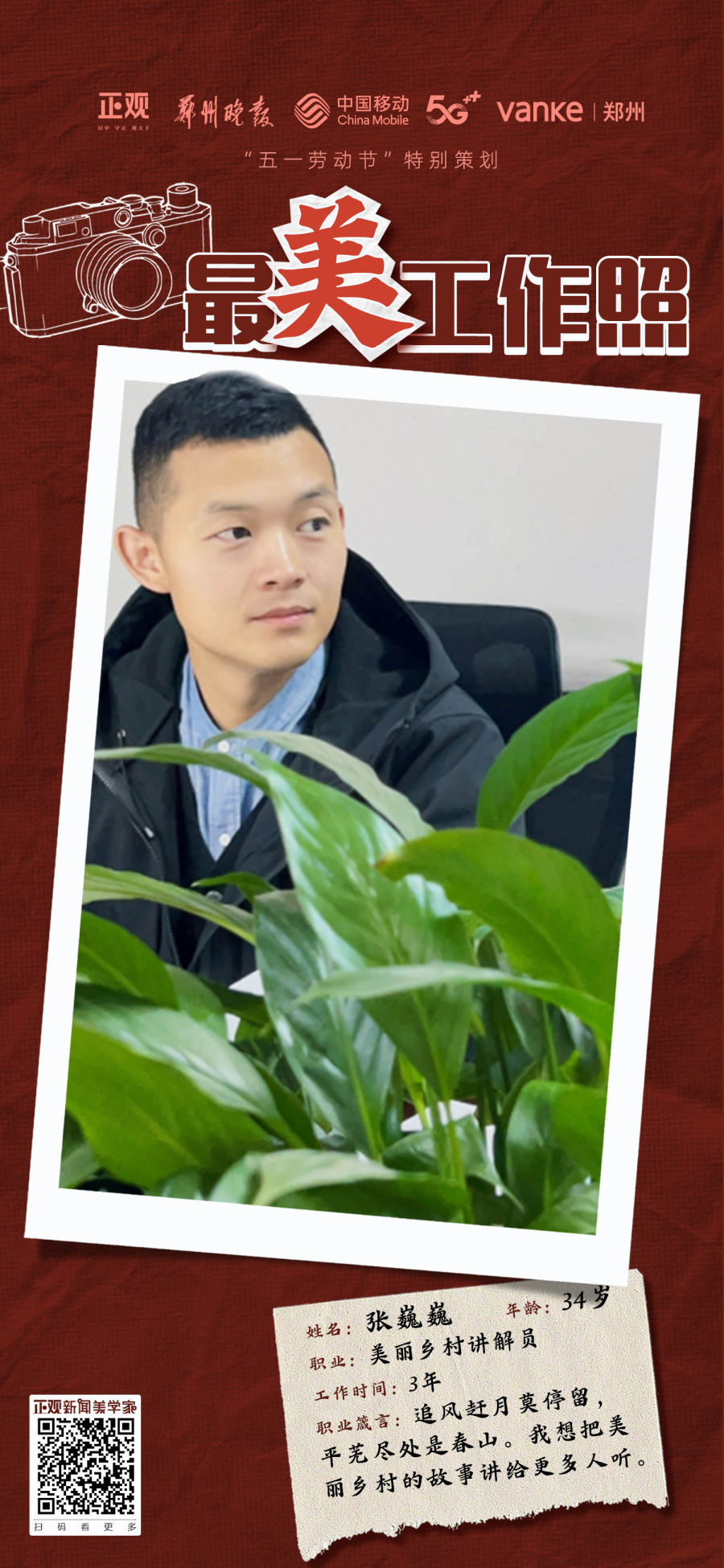 在“五一劳动节”来临之际,正观新闻·郑州晚报联合郑州移动、郑州万科推出《发掘“宝藏劳动者” 晒晒“最美工作照”——“郑州眼”致敬郑州劳动者》特别策划,征集活动持续进行。