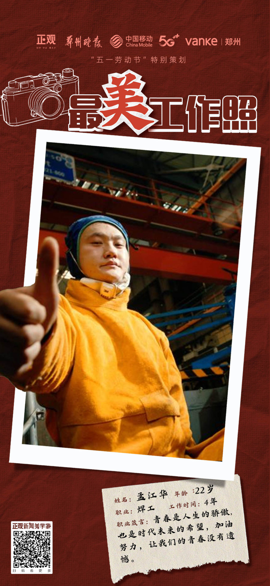 在“五一劳动节”来临之际,正观新闻·郑州晚报联合郑州移动、郑州万科推出《发掘“宝藏劳动者” 晒晒“最美工作照”——“郑州眼”致敬郑州劳动者》特别策划,征集活动持续进行。