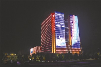不止是郑州东站,来到郑州国际会展中心,本次大赛的标语在屏幕上显得异常醒目,明亮的灯光下,这些标语也成了一道亮丽的风景线,同时为不少在此夜跑的市民增添了几分动力。