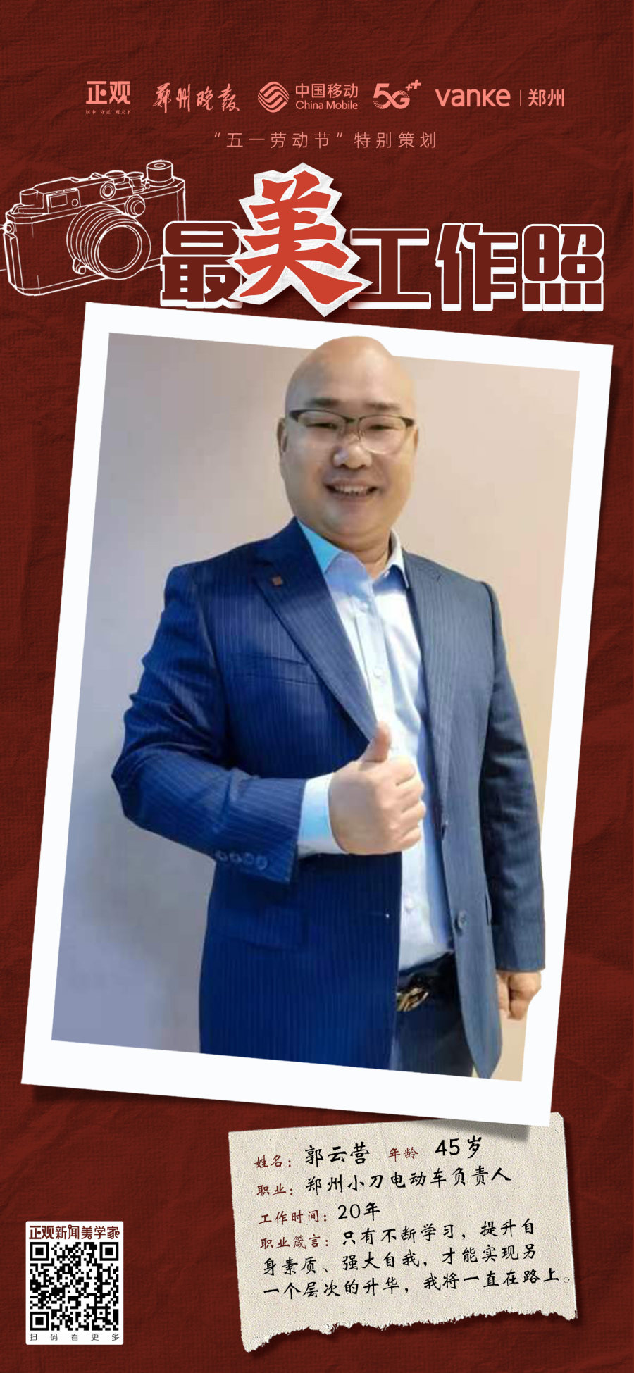 人物名片:郭云营,45岁,郑州小刀电动车负责人,工作 20年,多年一直做到区域销量最高、服务质量最好,跻身市场前三甲。