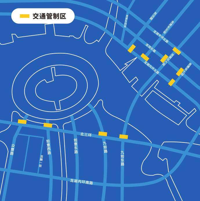 根据2023U.I.M.F1摩托艇世界锦标赛中国郑州大奖赛A(1-11)及包厢区验票及安检需要,自2023年4月27日08时至4月30日18时,对龙翼四街隧道全段、九如路(北三环至金融岛)、如意西路(北三环至金融岛)、众意路(北三环至金融岛)实施临时交通管制。管制期间,禁止一切车辆(含各类公共交通工具和非机动车)及行人在管制路段上通行、停留或横向穿行(持有2023U.I.M.F1摩托艇世界锦标赛中国郑州大奖赛各种通行证的车辆除外)。持A(1-11)及包厢区门票的观众可将车辆停放至众意河西二街沿线临时停车区。