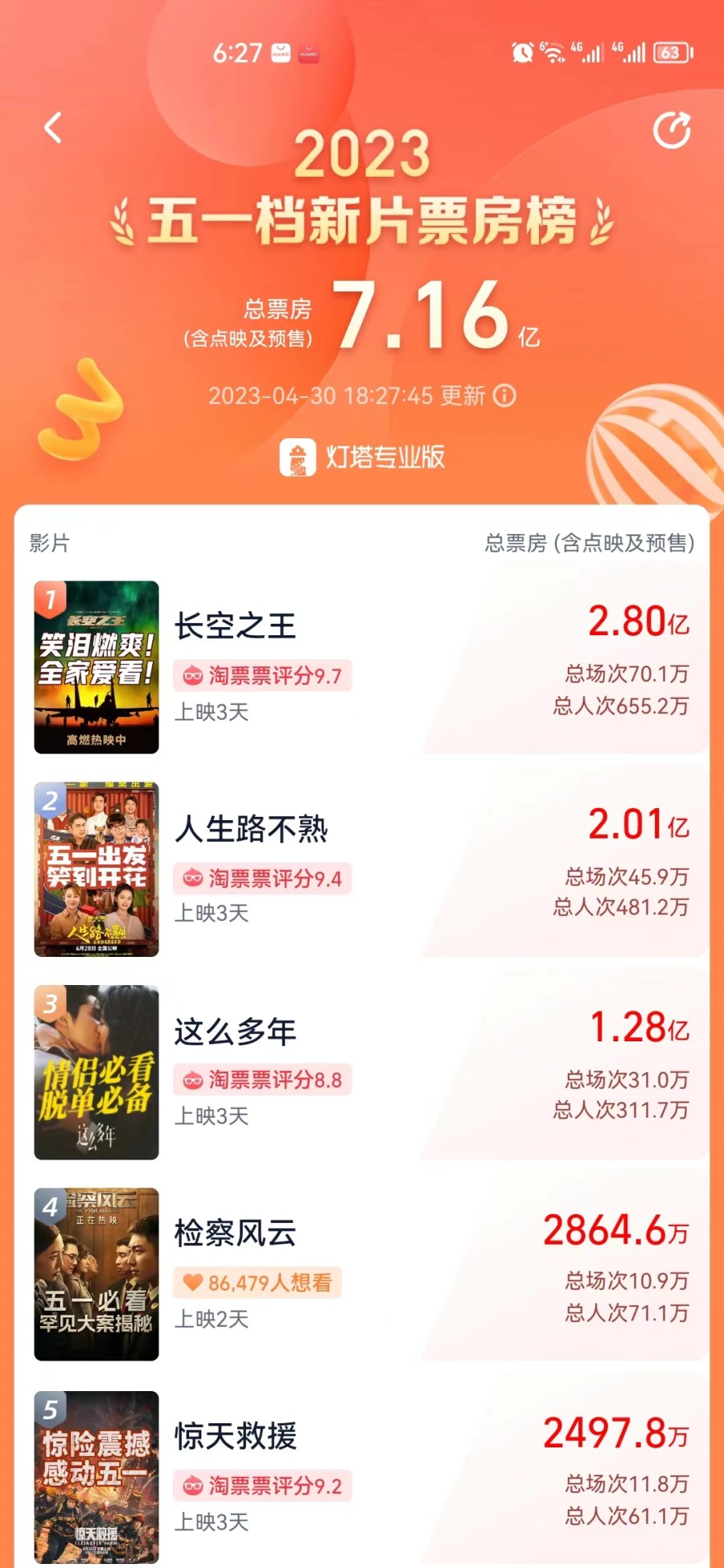 2023五一档新片总票房破7亿,《长空之王》领跑