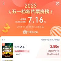 据灯塔专业版实时数据,截至4月30日17时38分,2023年五一档新片总票房(含预售)突破7亿。