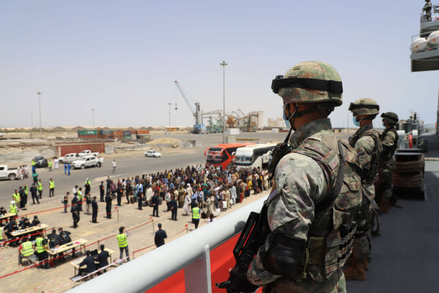 继中国海军2011年利比亚撤离行动和2015年也门撤离行动之后,苏丹撤离行动于4月26日在红海海域展开。两艘军舰来自正在亚丁湾护航的中国海军护航编队,携带舰载直升机1架,任务官兵490多名,其中特战队员数十名。