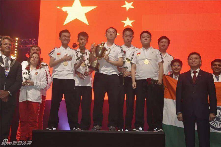 △2014年,王玥、丁立人、余泱漪、倪华、韦奕组成的中国男队拿到奥赛男团冠军