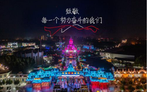 篝火狂欢载歌载舞、知名Coser轮番登场、无人机光影秀浪漫来袭……“五一”假期,郑州方特旅游度假区特色活动异彩纷呈,持续吸引众多省内外游客前来游玩。假日期间,当夜幕降临,数百架无人机汇聚在“方特城堡”上空,以星空为画布,以灯光为画笔,用极具特色的图案、起落交错的队形、变幻绚丽的灯光点燃了在场游客的热情。
