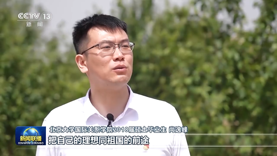 北京大学国际关系学院2018届硕士毕业生 尚逸峰:把自己的理想同祖国的前途,把自己的人生同民族的命运紧密联系在一起,总书记的教导给我明确指出了奋斗的方向。大学毕业后我选择去支教,然后就报名来到了基层,就是想把青春挥洒在祖国大地。