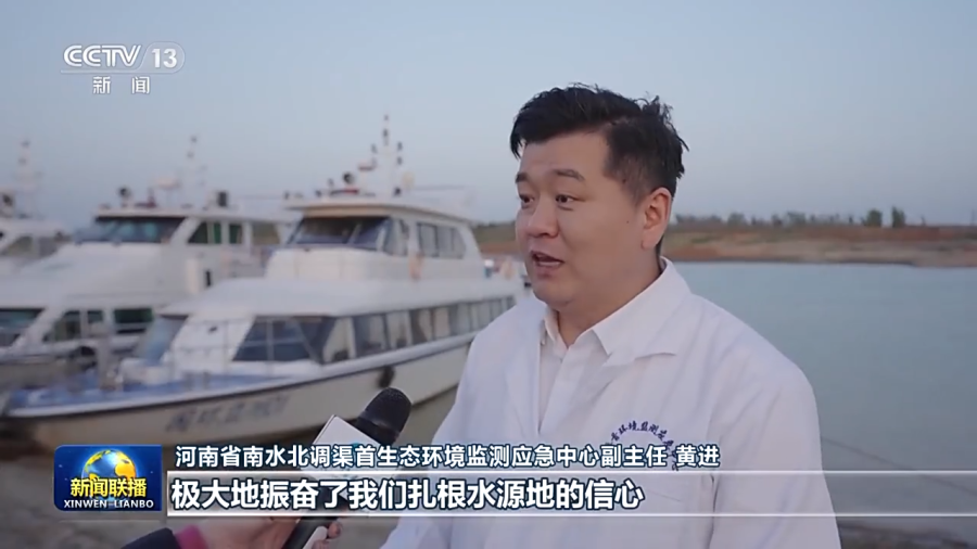 河南省南水北调渠首生态环境监测应急中心副主任 黄进:当时我们心情非常激动,极大地振奋了我们扎根水源地的信心和守好一库碧水的决心。现在有将近一亿的人能喝到我们干净、甘甜、放心的南水北调的水,我们自己非常有成就感。