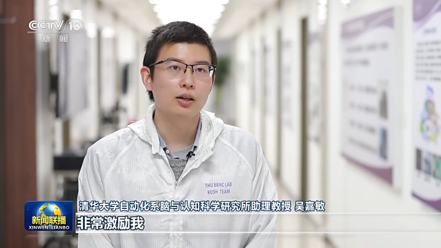 清华大学自动化系脑与认知科学研究所助理教授 吴嘉敏:总书记特别提到,我们青年人生逢盛世,肩负重任。当时听到这句话的时候,非常激励我,要朝着面向世界科技前沿(努力),为我们国家科技自立自强,贡献我们青年人青春的力量。