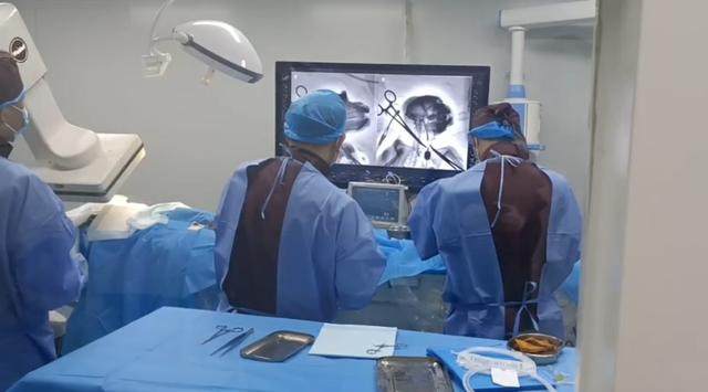 马永杰:去年,团队曾在羊身上完成了首例介入式脑机接口动物试验。脑电极植入术由介入机器人辅助完成,我在主端操作完成了部分血管造影。试验最终在羊脑血管内完成了传感器植入,并成功采集到了脑电信号。