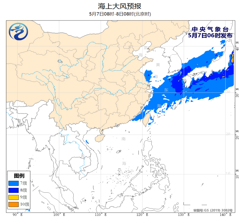 预计,7日白天至夜间,黄海西南部海域、东海大部海域、台湾海峡和台湾以东洋面将有7~8级、阵风9~10级的大风。