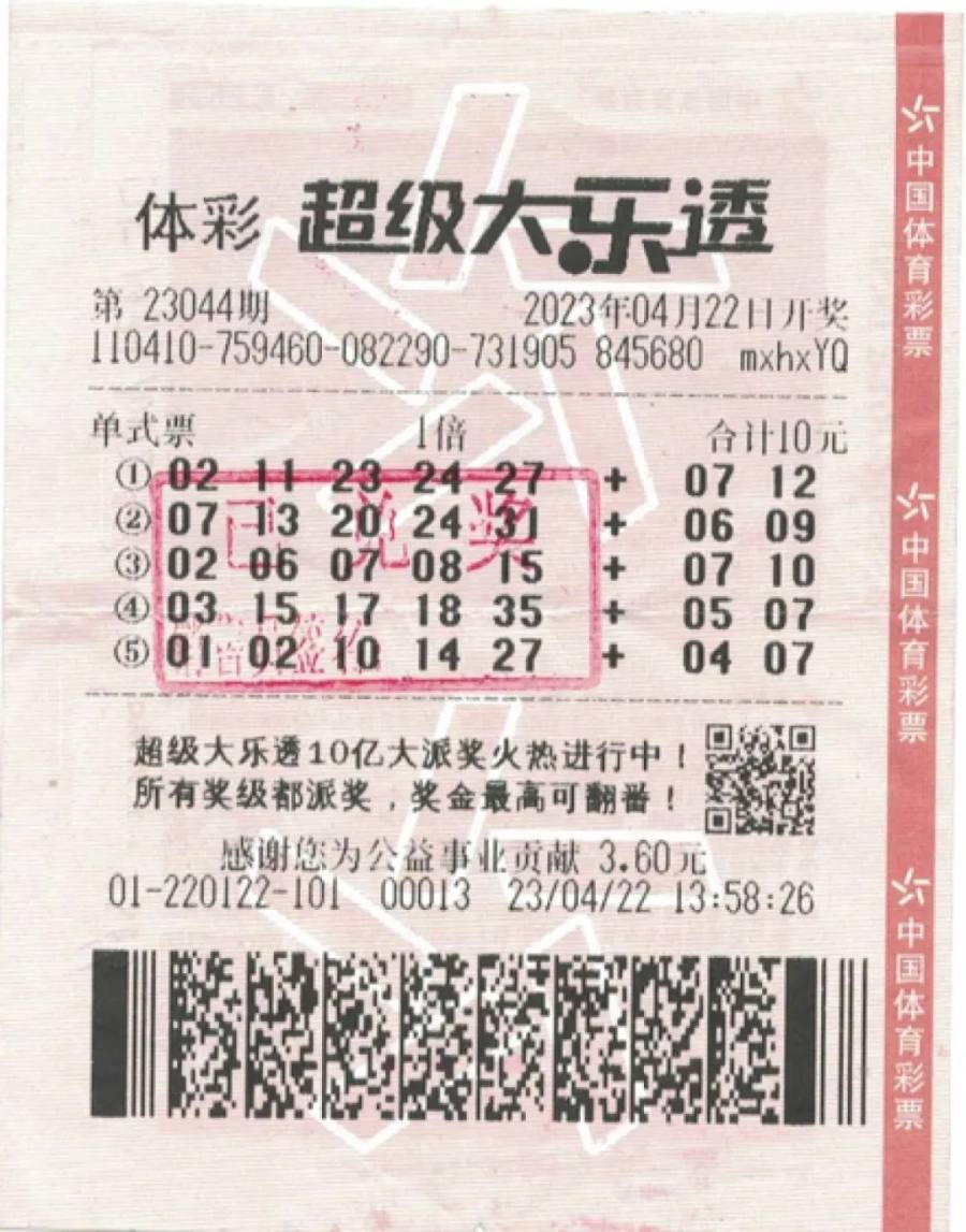 4月22日晚,体彩超级大乐透第23044期开奖,当期全国共中出5注一等奖,河南购彩者收获其中2注,花落郑州和周口两地。正值10亿元大派奖期间,周口那1注因符合派奖条件,最终获得3299万元奖金,成为当期最大赢家。郑州这1注是基本投注一等奖,奖金1000万元。
