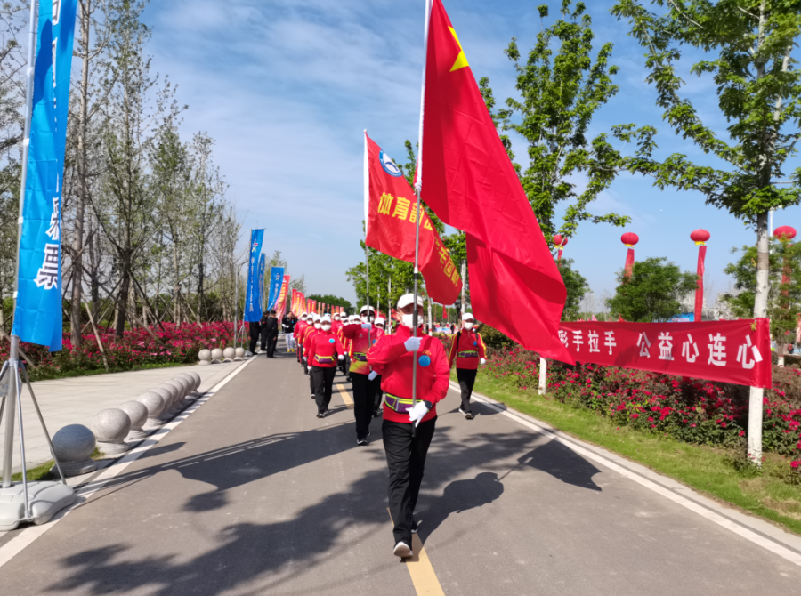 5月7日,百花争艳,彩旗招展,奋进向上的音乐飘扬在河南焦作市大沙河公园,焦作市迎来了2023年全国“行走大运河”全民健身健步走全国主会场活动。