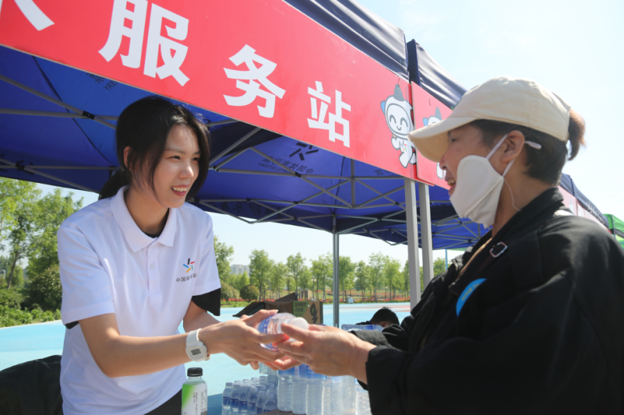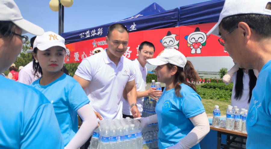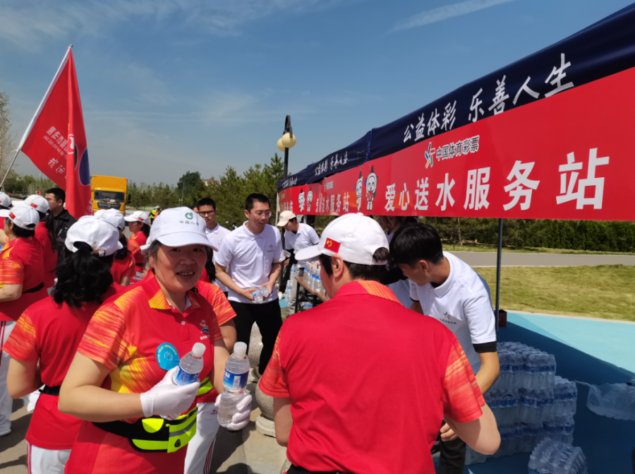 蓝天白云下天气较热,各个方队热情高涨,体力消耗很大,当接到体彩志愿者一瓶瓶充满爱心和鼓励的矿泉水时,参与活动的体育爱好者信心倍增,以更加饱满的精神状态走完了全程。在中国体育彩票的爱心助力下,大汗淋漓的体育爱好者“走出了健康、走出了快乐、走出了幸福”!据了解,此次活动共送出爱心瓶装水5000余瓶。
