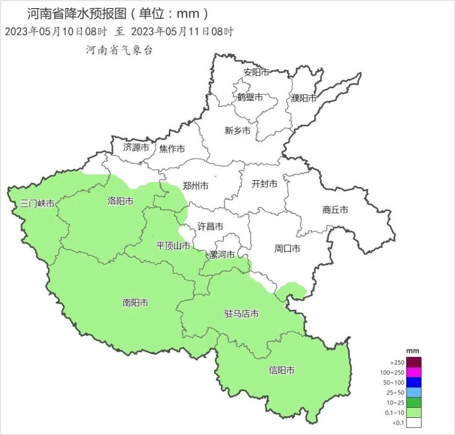9日夜里,全省多云到阴天,其中三门峡、洛阳、郑州西部、南阳、信阳、驻马店、平顶山部分县市有小雨或零星小雨。