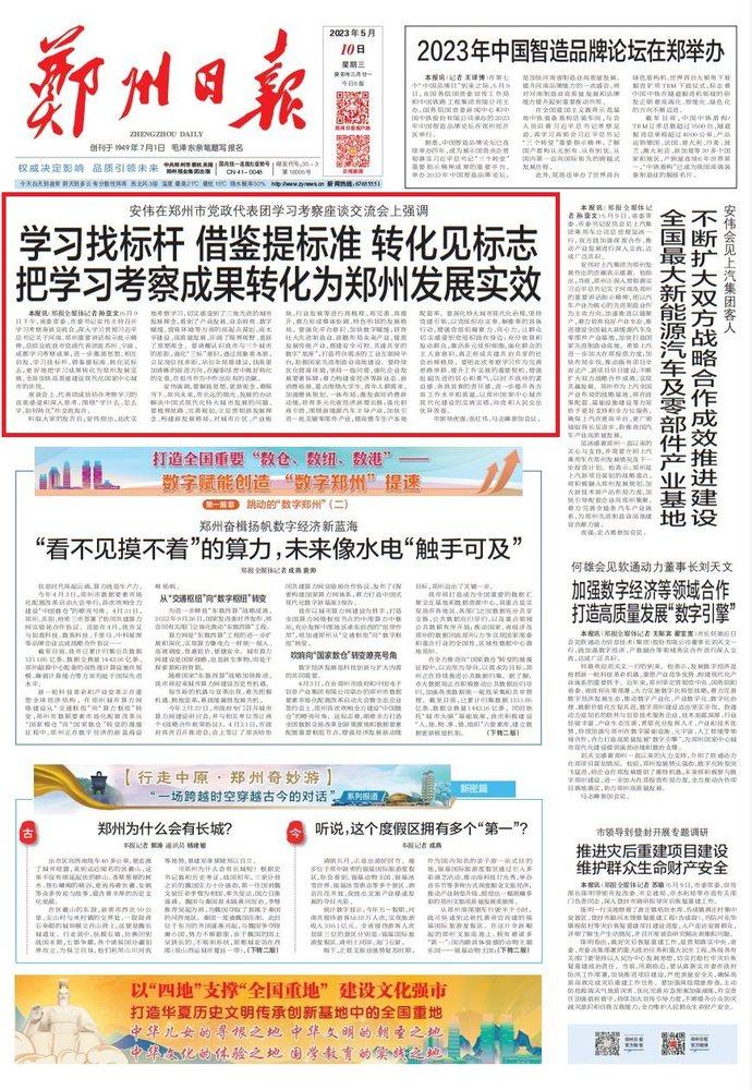 安伟强调,要解放思想、更新观念,着眼当下、面向未来,用长远的眼光、发展的办法解决中国式现代化特大城市发展的问题。要梳理思路、完善规划,立足贯彻新发展理念、构建新发展格局,对城市片区、产业板块、行业发展等进行再梳理、再完善、再提升,着力形成整体协调、特色明显的发展格局。要强化平台意识、加快数字赋能,培育壮大先进制造业,前瞻布局未来产业,提质发展传统产业,搭建安全可控、共通共享的数字“底座”,打造符合需求的工业互联网平台,助推国家先进制造业高地建设。要持续优化营商环境,坚持一线问需,强化企业发展要素保障;着力构建夜经济等新业态、新消费场景,重点围绕大学生、青年人群需求,加强整体规划、一体布局,激发夜间消费新动能,培育多元化夜经济新增长极;强化招商引资,围绕新能源汽车主导产业,加快引进一批关键零部件产业,提高整车生产本地配套率。要深化特大城市现代化治理,坚持党建引领,以党组织办实事、解难事的具体行动,增强党组织凝聚力、向心力,让群众切实感受到党组织就在身边;充分依靠和发动群众,激活多元组织细胞,强化群众的主人翁意识,真正形成共建共治共享的社会治理格局。要把此次考察学习作为完善思路举措、提升工作实效的重要契机,增强赶超先进的信心和勇气,以时不我待的紧迫感、舍我其谁的责任感,进一步提升各方面工作水平和质量,以郑州国家中心城市现代化建设的实效实绩,向党和人民交出优异答卷。
