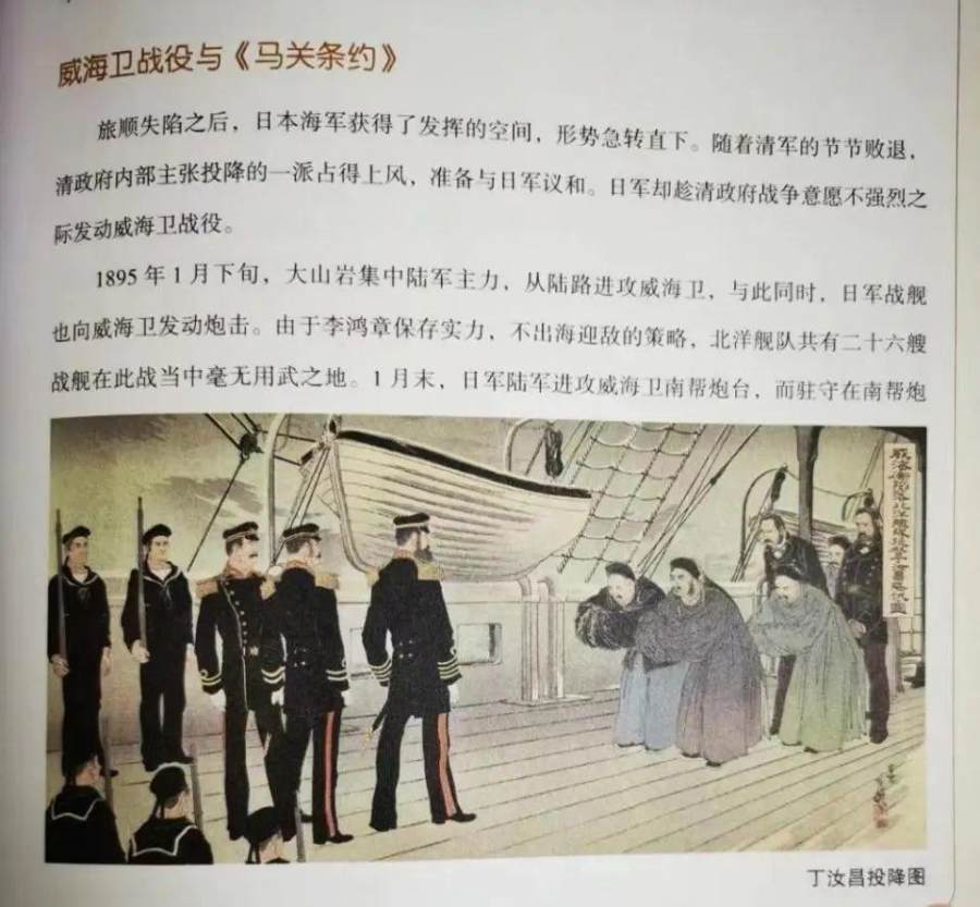 历史读物上标注的“丁汝昌投降图”