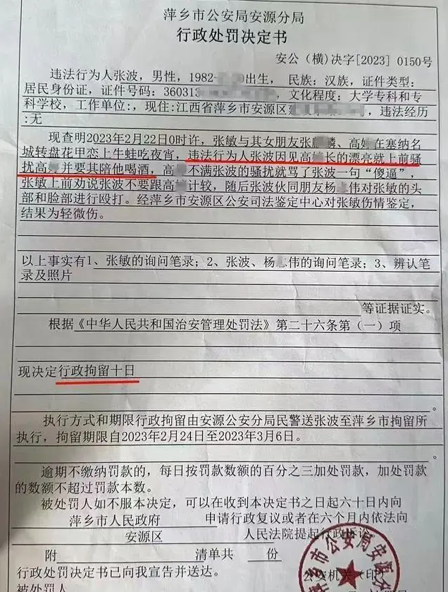 而此前,有网友反映,今年2月22日凌晨,他与女朋友及其闺蜜在萍乡市吃夜宵,一邻桌男子上前骚扰他女朋友的闺蜜并让其陪喝酒,遭拒后还动手把他打成轻微伤。据他了解,骚扰女性的男子系湘东分局公职人员。