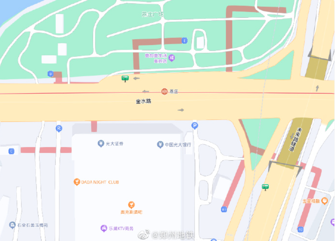 位置:燕庄站位于郑州市金水区金水路与未来路十字路口西北侧,沿金水路呈东西方向布置,E口位于金水路北侧。