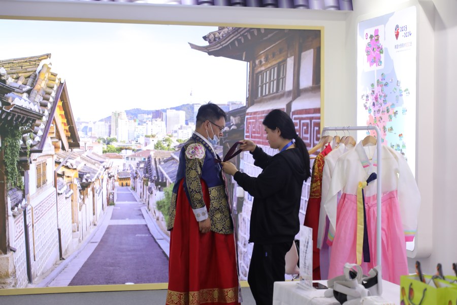 昨日,在郑州E贸易博览交易中心,前来逛展的市民纷纷体验异域的产品文化。 郑报全媒体记者 李新华 摄
