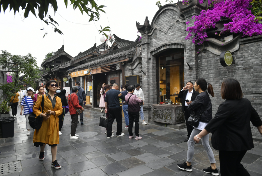 “春熙路太古里商业部分总建筑面积有11万平方米,由27栋独栋建筑和7栋原有的古建筑组成。在刚刚过去的五一,整个春熙路商圈的人流量达到480万人次,也是位居全国所有商圈的首位。”5月12日,来自成都锦江区商务局的工作人员任洪博介绍说。