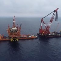 经过近6个小时的作业,下午六点,恩平20-4海上钻采平台与之前已经安装在海底,高达百米的导管架,成功实现了精准对接。