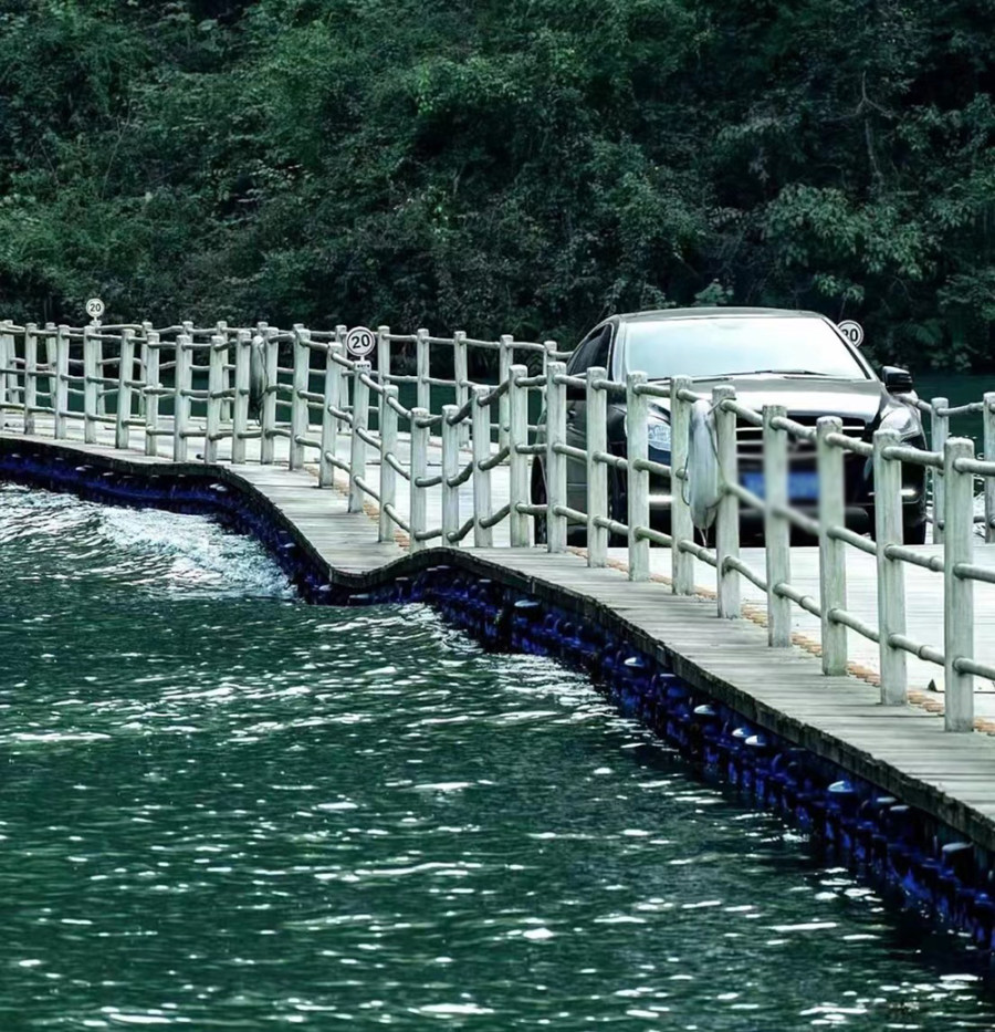 据公开信息,该“水上浮桥”在狮子关景区被称为“廊桥遗梦”,游客可自驾通行。不少网友分享称,车辆驶过带起水面涟漪,犹如车在水上漂,让人惊艳。