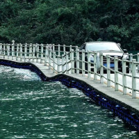 狮子关景区负责人今年3月初接受媒体采访时称,这座浮桥于2015年初开始修建,使用的是德国的技术,浮桥没有底座,靠PVE材质的浮筒支撑,桥中央有钢索固定,车行驶过的时候,桥不会产生大距离的浮动。且桥是有限重的,只允许2.8吨以下的小车通行。“来我们景点的游客,可能90%都是冲着浮桥来的。”该负责人称。