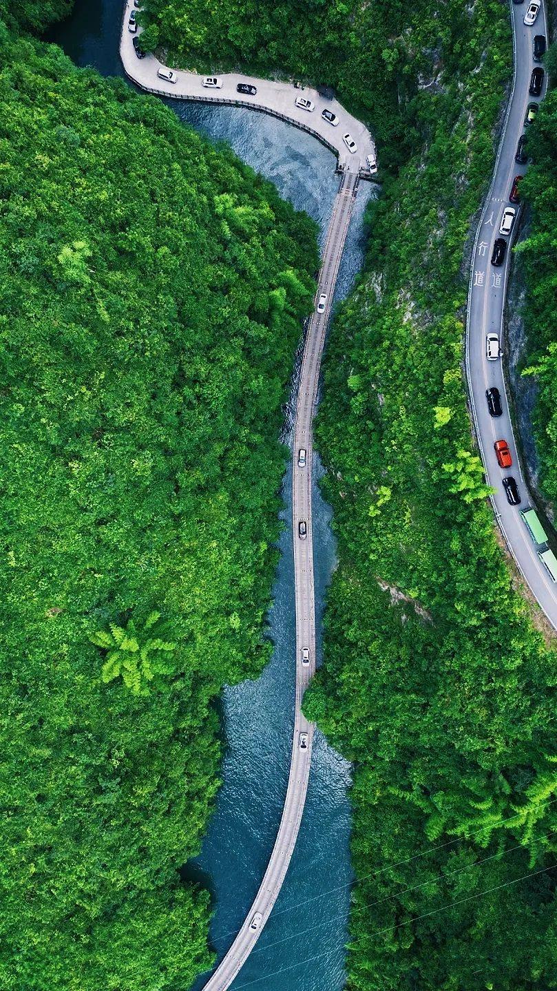 “廊桥遗梦”浮桥航拍图。 “狮子关景区”微信公号 图