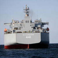 据伊朗媒体报道,“莫克兰”号海上基地舰可搭载多架直升机,并携带10万吨燃料和补给,可在不靠岸的情况下航行1000天,提供后勤保障支持。