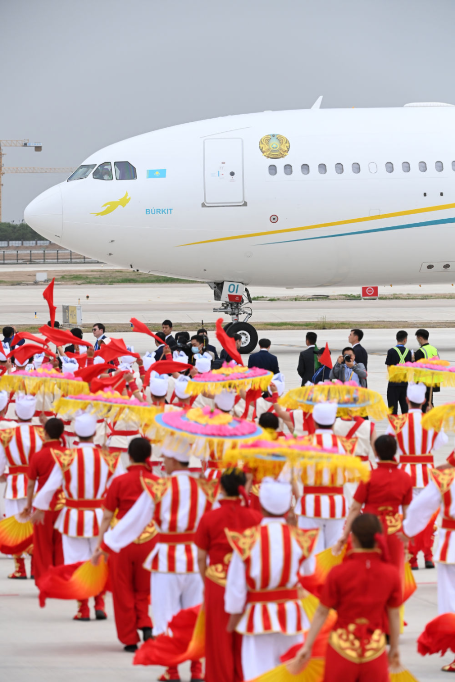 △2023年5月17日,陕西西安,当地民众以热情的腰鼓、欢快的秧歌等民间艺术表演,欢迎参加中国—中亚峰会的贵宾。