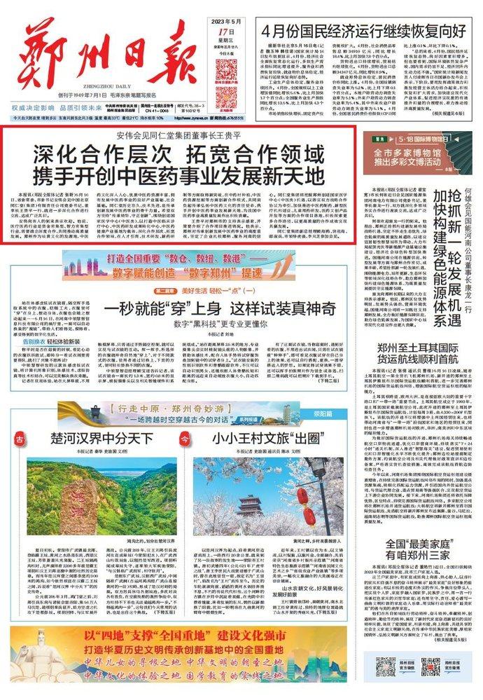 王贵平对郑州市的支持表示感谢,并简要介绍了合作项目推进情况。他表示,郑州对传承创新发展中医药事业的高度重视,坚定了企业扎根郑州、服务河南的信心。同仁堂集团将把握郑州创建国家医学中心(中医类)机遇,以落实双方战略合作协议为牵引,加快推进中医药制药、新型医疗机构建设、儿童用药研发、医药文创产品开发等方面的合作项目落地,积极探索更多合作路径,以更高质量的合作成效实现共赢发展。