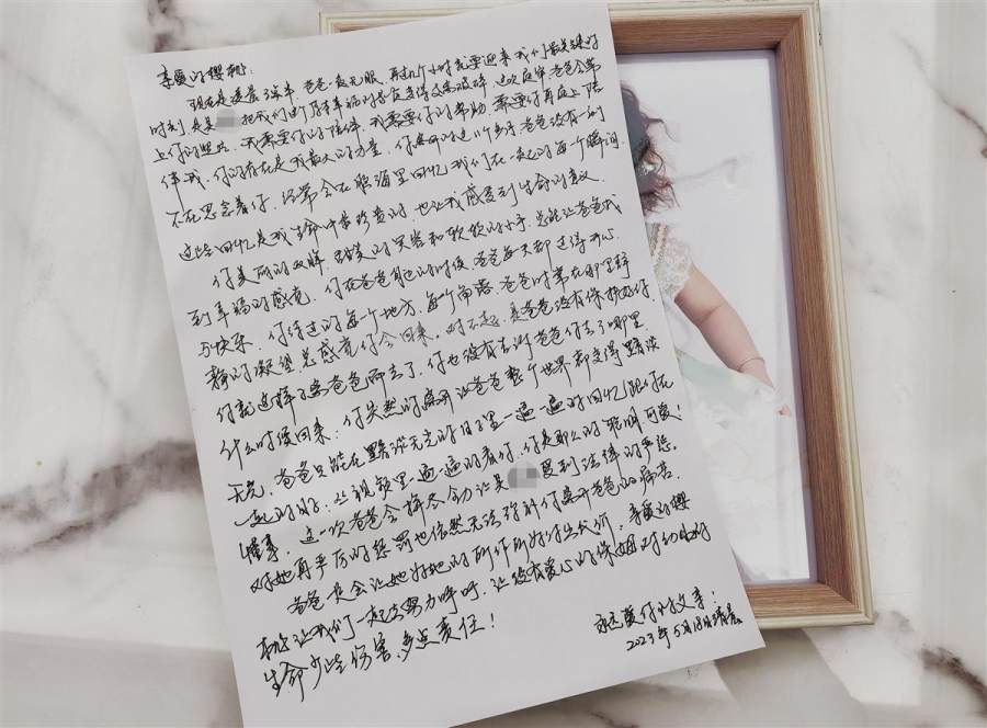 女童父亲宣判前给女儿写的悼念信(来源:受访者)
