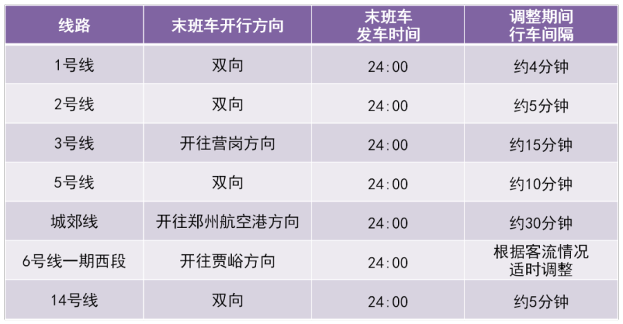 为方便市民乘客出行,郑州地铁部分线路运营服务时间将有所调整。具体安排为: