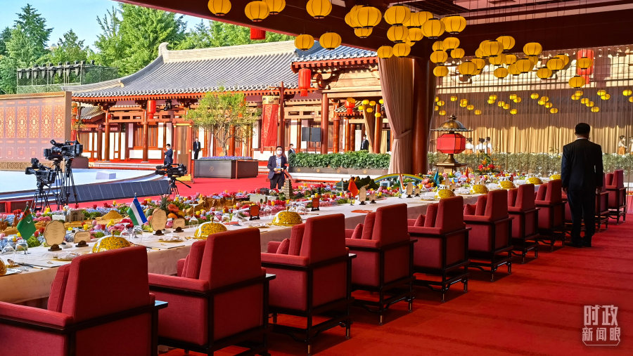5月17日下午至18日晚间,习近平主席分别同中亚五国元首会谈,并在西安大唐芙蓉园为远道而来的贵宾举行了独具特色的欢迎仪式和欢迎宴会。