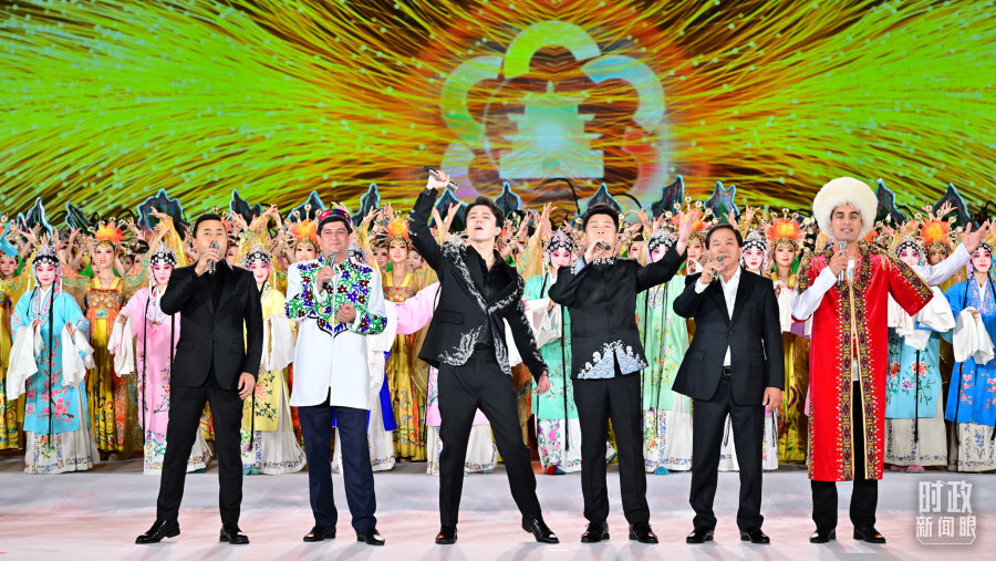 △来自中国和中亚五国的歌手联袂演唱《美美与共》。(总台记者孙楠拍摄)