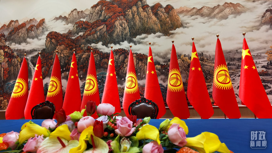 △会谈后,中吉元首在此签署了《中华人民共和国和吉尔吉斯共和国关于建立新时代全面战略伙伴关系的联合宣言》。(总台央视记者郭鸿拍摄)