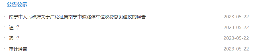 5月21日,南宁市发展和改革委员会发布关于召开南宁市道路停车位机动车停放服务收费标准听证会的公告(第1号)。