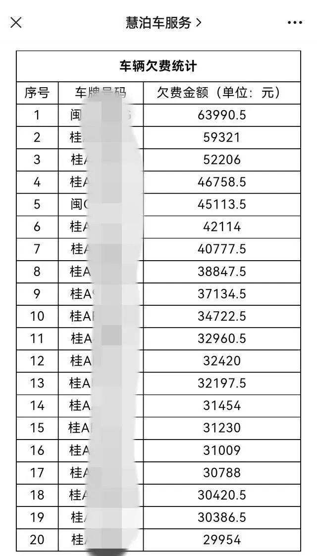 惠泊公司公布的部分欠费车辆。图源:惠泊公司公众号
