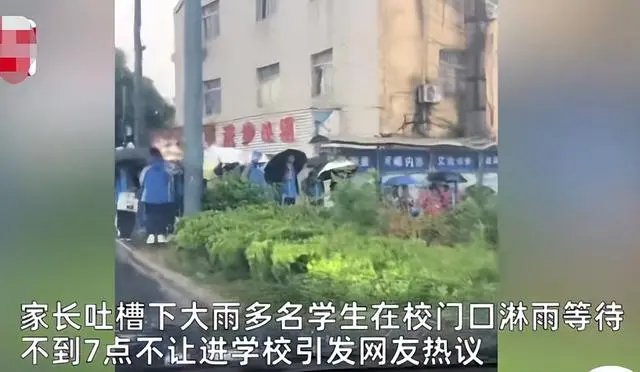 5月22日,江苏常州的一位家长愤怒吐槽,大雨天多名学生在校门口淋雨等待,不到7点不让进学校。