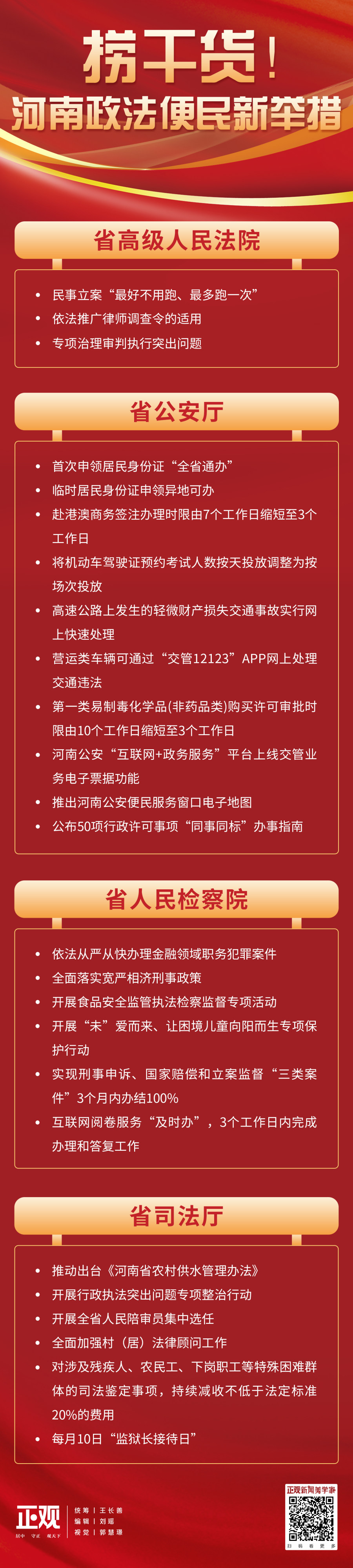 对欠缺个别立案材料的民事起诉先予登记立案,机动车驾驶证预约考试人数按天投放调整为按场次投放,对高速公路上发生的轻微财产损失交通事故实行网上快速处理,降低特殊困难群体司法鉴定收费标准……5月25日,河南省政府新闻办就全省政法系统2023年爱民实践服务承诺活动召开新闻发布会,我省政法系统再次推出便民利民举措40条。