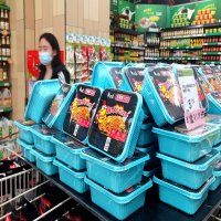 在经开区滨水家园附近一家锅圈食汇火锅烧烤食材店内,除了众多火锅食材,鸡翅、香肠、鱿鱼、羊肉串、牛肉串等烧烤食材也成为夏季畅销品。