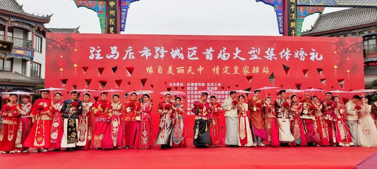 5月21日上午,驻马店市驿城区首届大型集体婚礼在皇家驿站举行。14对新人身着中式传统礼服,在华而不俗、喜而不闹的雅韵中式婚礼下,山盟海誓、喜结良缘。河南体彩驻马店分中心也为14对新人送上伴手礼与新婚祝福,给婚礼增添了一份别样的喜气。