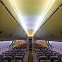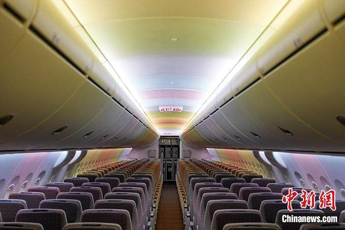 东航C919客机客舱内部设置了七彩灯光。 东航 供图
