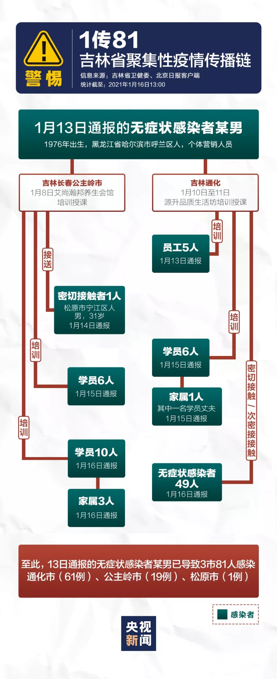 截至16日13时,此次“超级传播”事件已致吉林省81人感染。