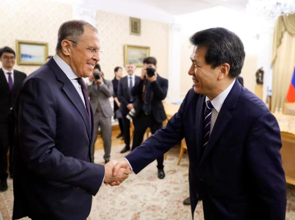 中国政府欧亚事务特别代表李辉同俄罗斯外长拉夫罗夫等举行会见会谈