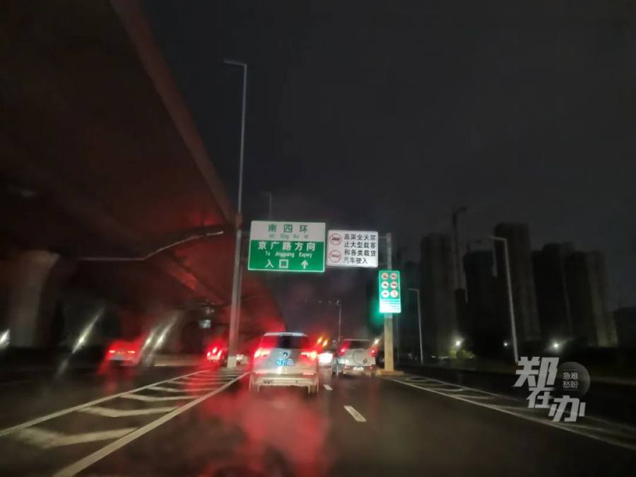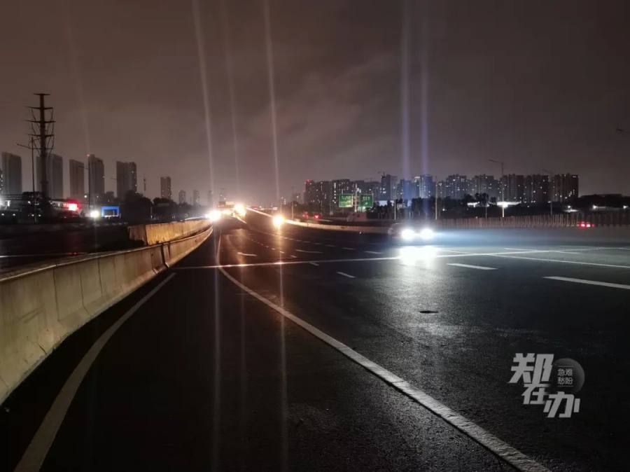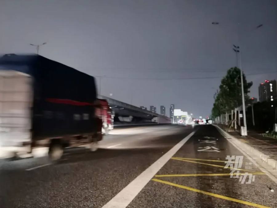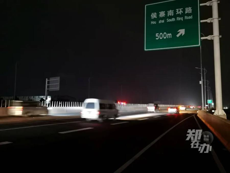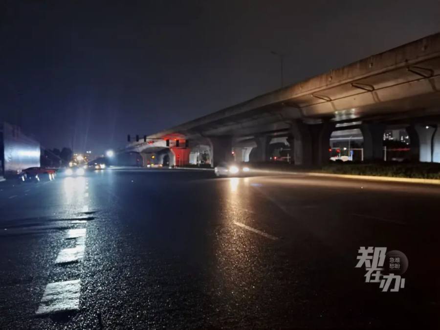 随后,记者沿南四环经京广路向西行驶,至嵩山路立交桥区域整个路面已无路灯照明,前方至郑密路约3公里长的路段陷入黑暗之中,再向西行至萍湖路时路灯再度亮起,至郑少高速之间均有路灯提供照明。